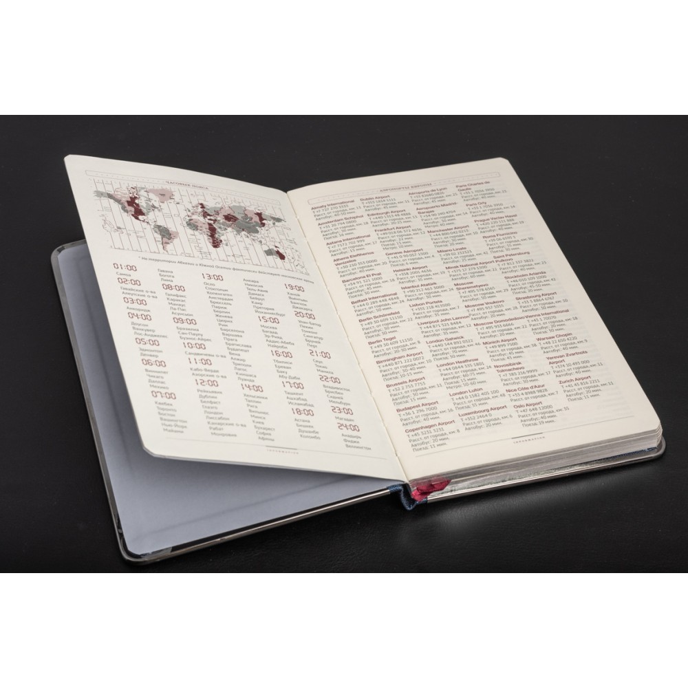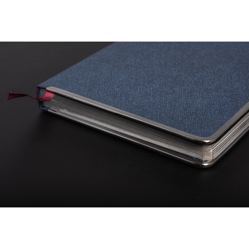 Оформить заказСиний ежедневник формата А5 доступен в твердом переплете. Эффектный рельеф обложки с благородным матовым эффектом напоминает натуральную кожу. Солидный и респектабельный образ создается с помощью металлической окантовки. Его блеск усиливается, чтобы соответствовать разрезу. Скругленные углы ежедневника подчеркивают изящество и элегантность. Недатированный блок состоит из 272 переплетенных страниц. Бежевая бумага снижает усталость от работы. Плотность листа 70г/кв. Обновлена справочная информация (единицы измерения, часовые пояса, номера телефонов и т. д.) на 19 страницах и добавлены тонкие шелковые закладки для более удобной навигации. Вы можете заказать тиснение на обложке этого дневника.